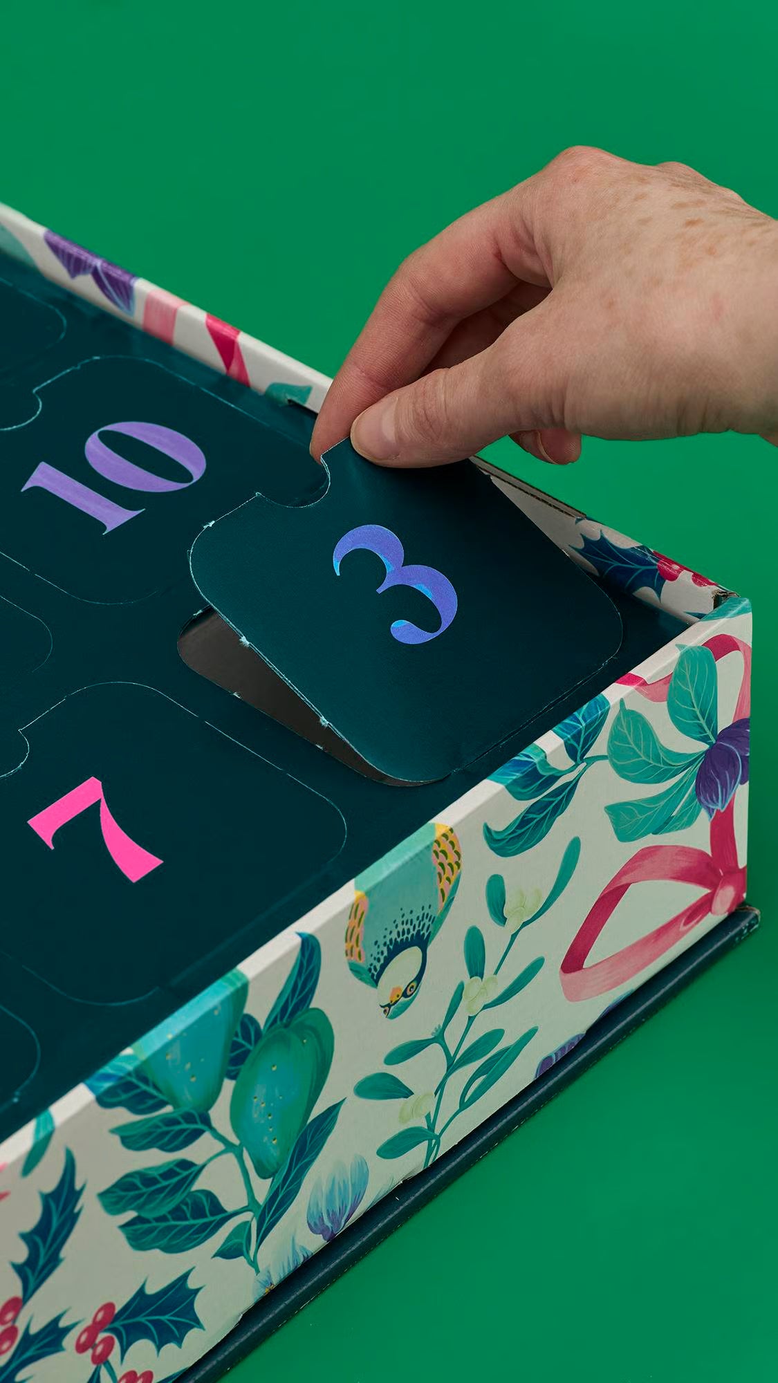While none are included in this gift, Illustator Charlotte Day found inspiration in the feathered friends from a classic carol, saying, "Partridges are such endearing little birds and I wanted to make them as characterful as possible — while surrounding them with layers of seasonal botanicals and golden details that echo the opulence of the classic carol."