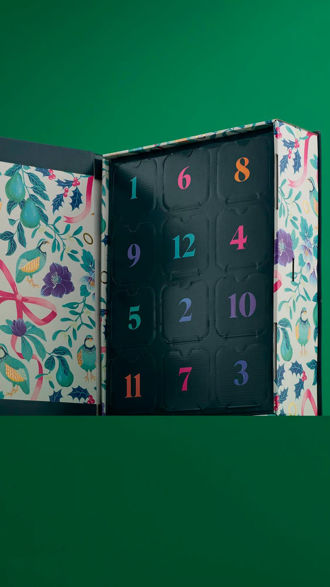 On the first day of Christmas my true love gave to me, a gift with 12 Christmas treats. An array of bath, body and shower goodies await you behind each door — if you can resist opening them all at once. Included inside your gift is an exclusive hand cream, not included is a ridiculous number of birds.