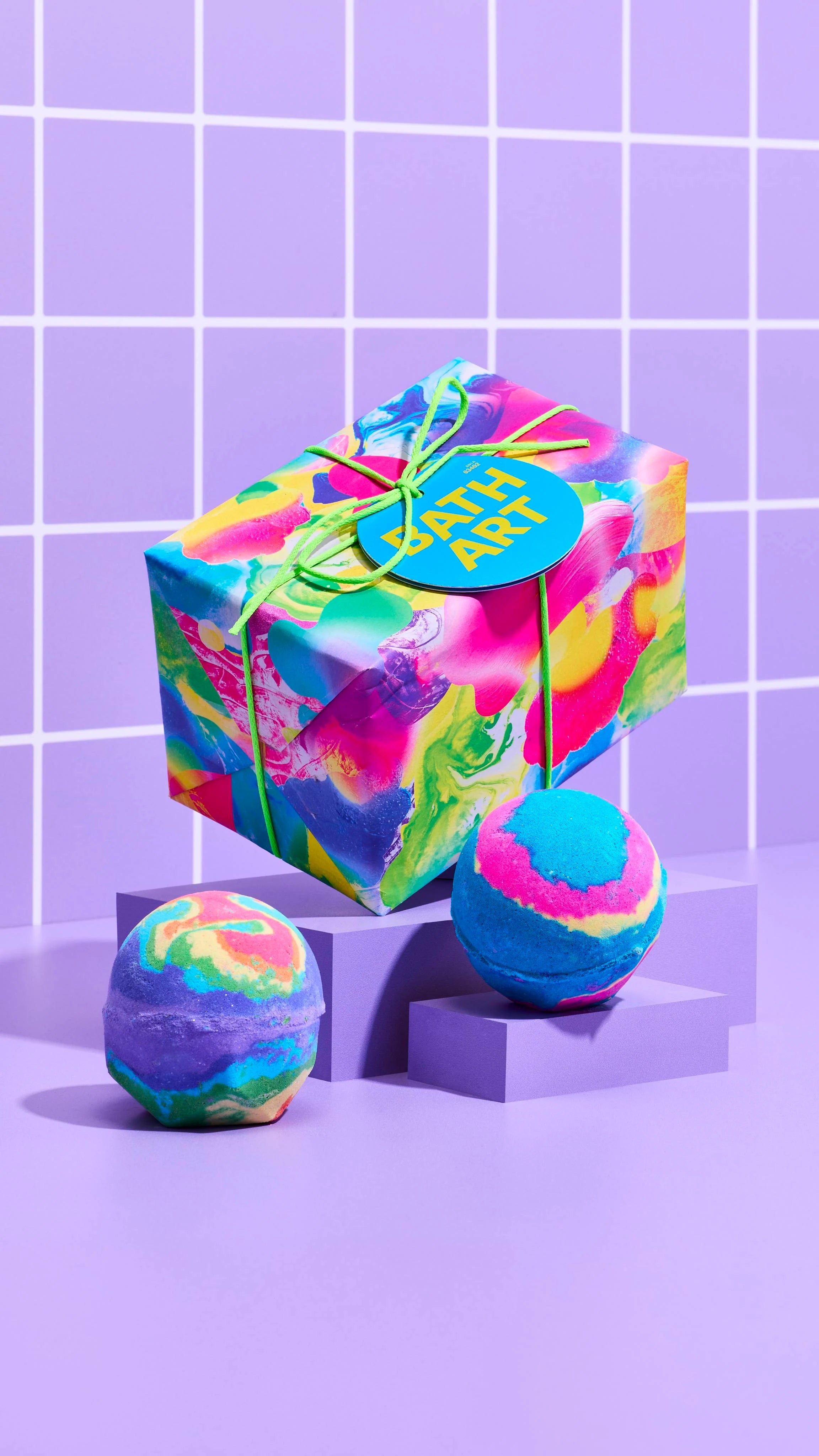 The perfect gift for those colorful friends that bring a sparkle to your day. Bathe like Pablo Picasso and soak in a kaleidoscope of color with two fresh and fruity bath bombs.