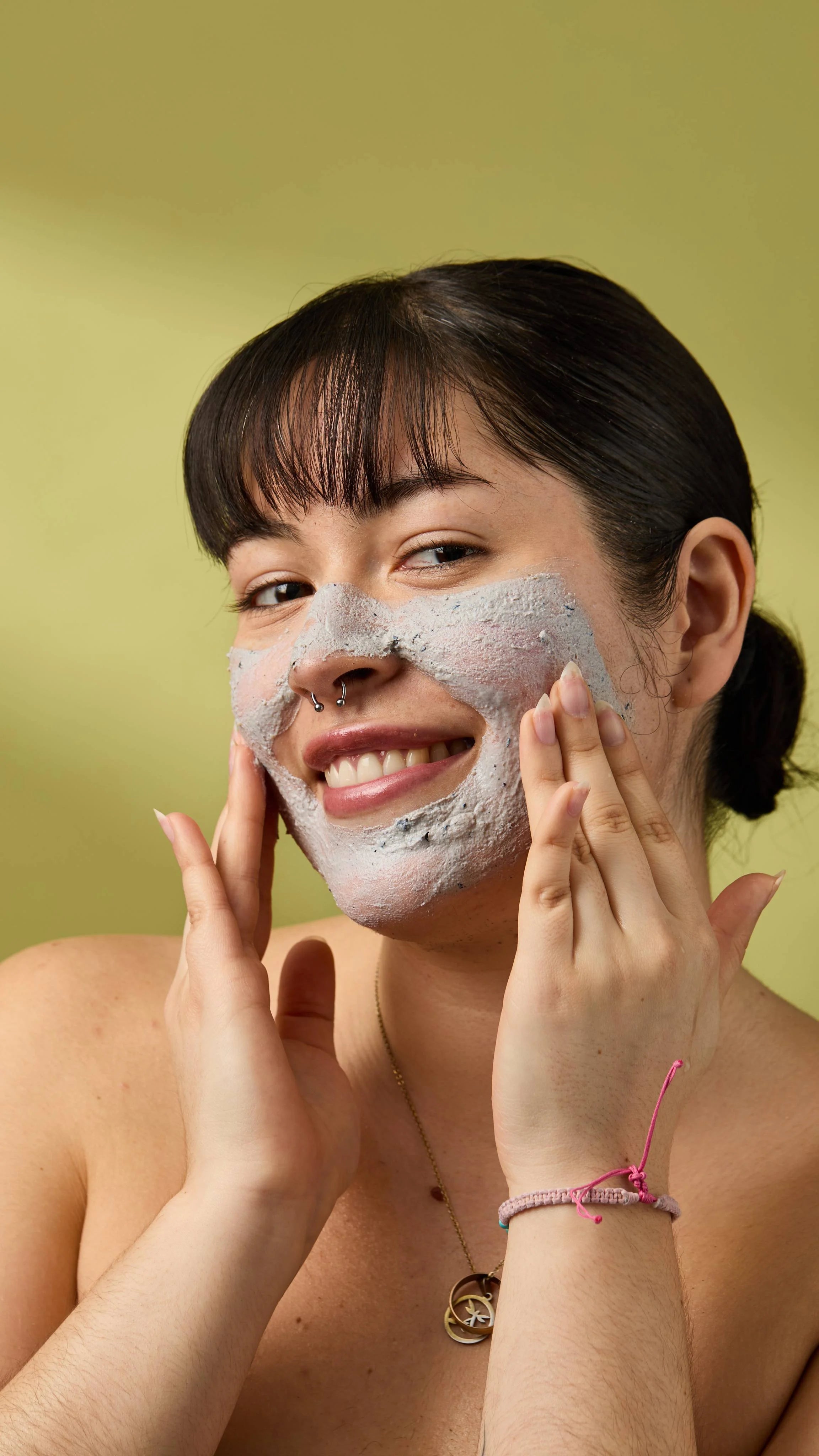 A bunch of antioxidant-rich blueberries, calming calamine and balancing juniper berry oil for a happy, glowing complexion. Creamy coconut yogurt and aloe vera leave skin so deliciously soft, you’ll look good enough to eat.