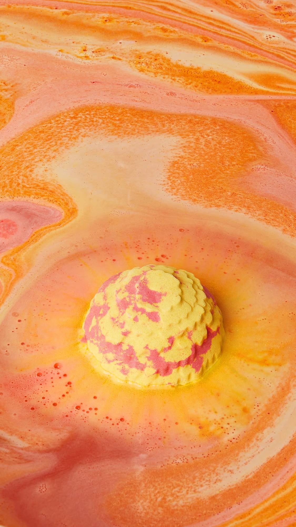 - Beautiful in the bath, this vibrant bath bomb provides a feast for the eyes.