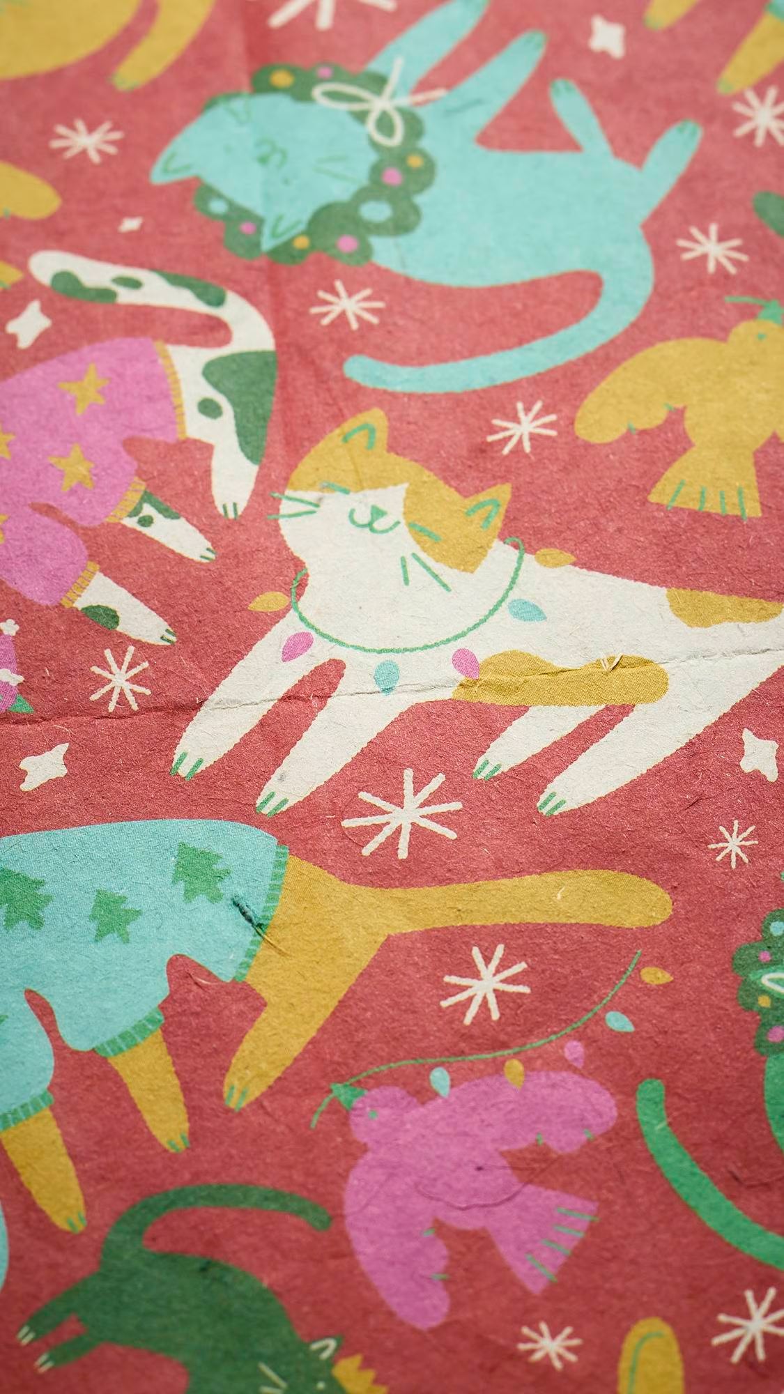 When they’re not ripping up wrapping paper, knocking over the Christmas tree or hiding in boxes, our beloved Christmas companions inspired this wonderfully mischievous reusable lokta wrapping paper.