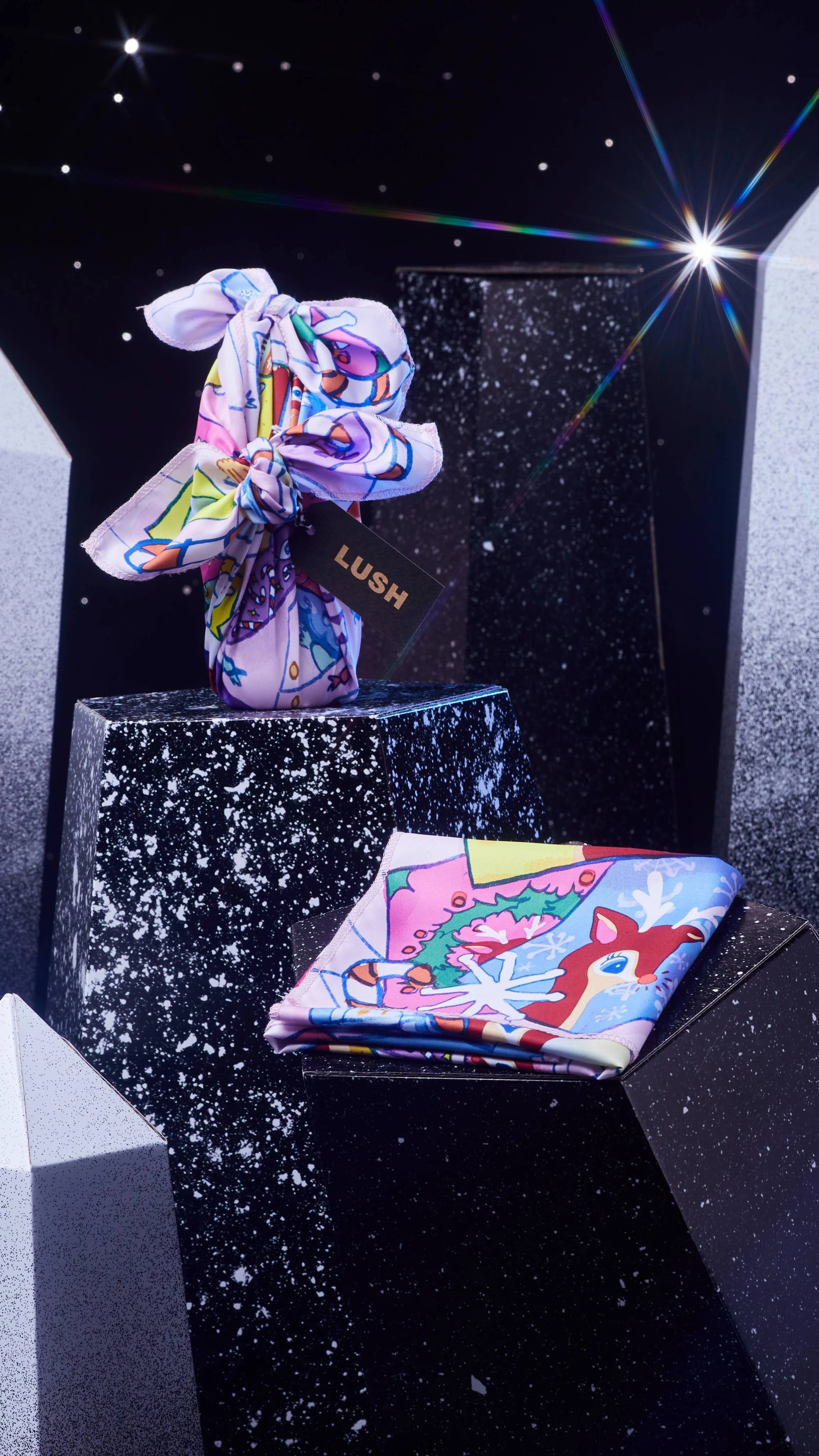 Lush Knot Wraps are a reusable and easy-peasy wrapping alternative to gift papers, made from either organic cotton or recycled polyester. They come in a variety of colors, designs and sizes! Ditch disposable paper for good and wrap up your gifts and naked products again and again with our reusable, vibrant and fun Knot Wraps.