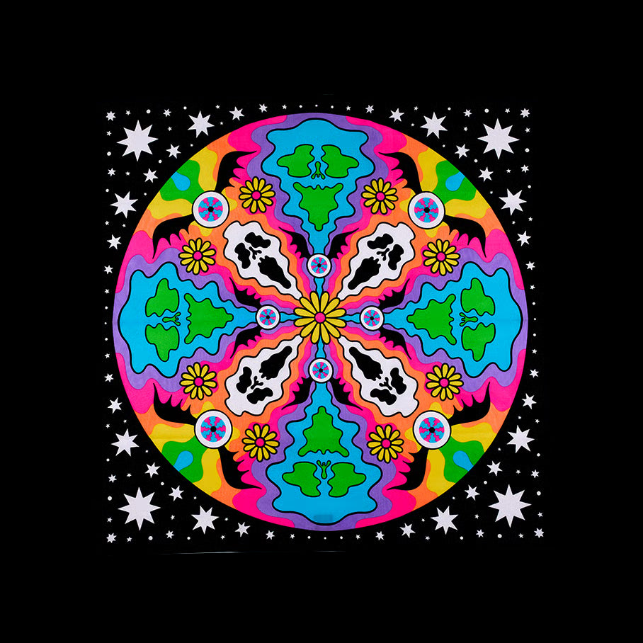 Designed by Arizona-based artist Oliver Hibert, whose colorful, bold and surreal art acts as an escape from the mundane. "I created this swirling tapestry of floral echoes and playful phantoms as a celebration of symmetry, color, and the strange magic that sneaks in when you’re not looking. Somehow, though … it feels like it might be looking back."