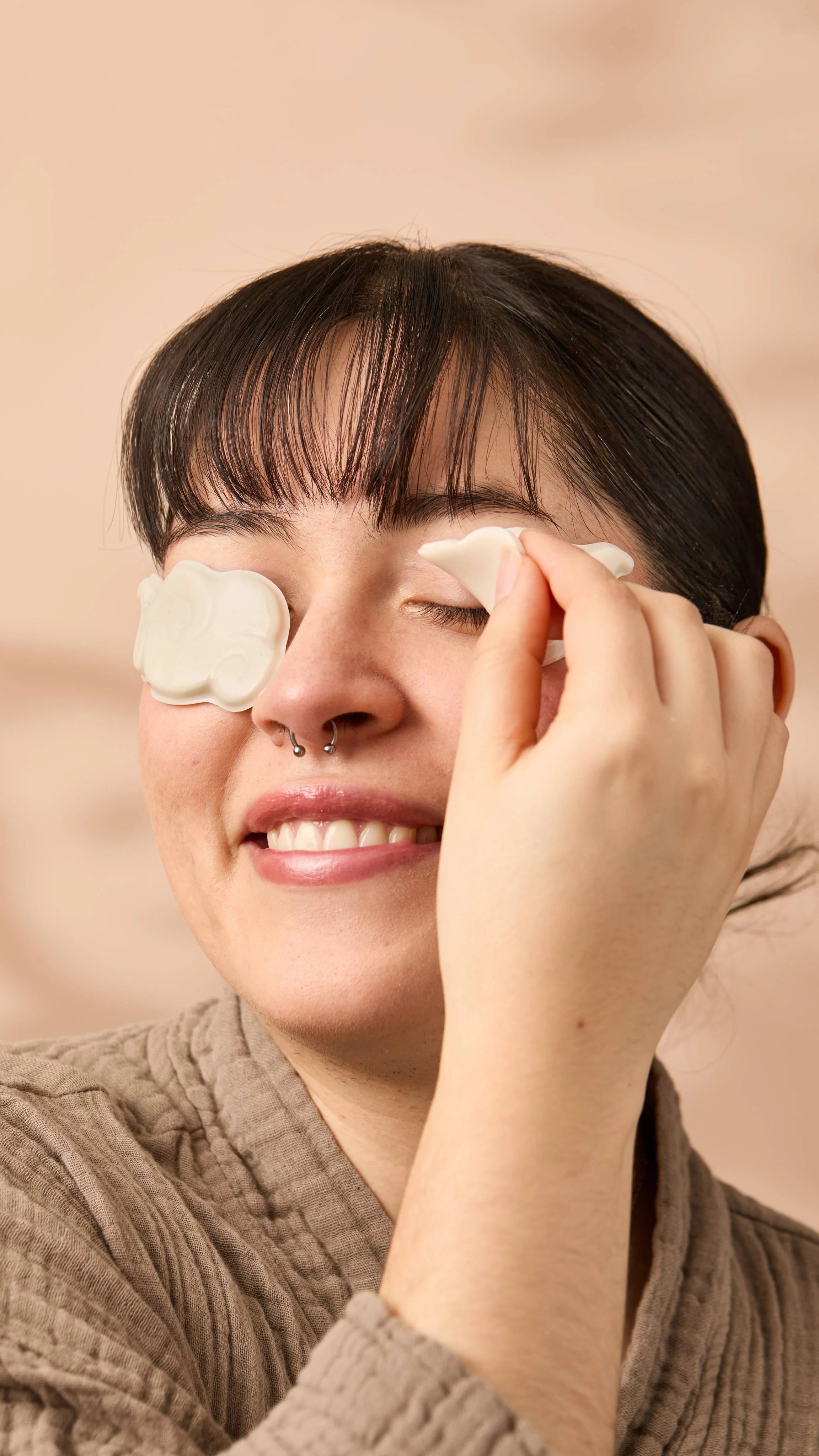 - Eyes and the surrounding skin can be a little sensitive (if a little dramatic). We’ve used gentle, hydrating organic rice milk that soothes and calms skin that just isn’t in the mood.