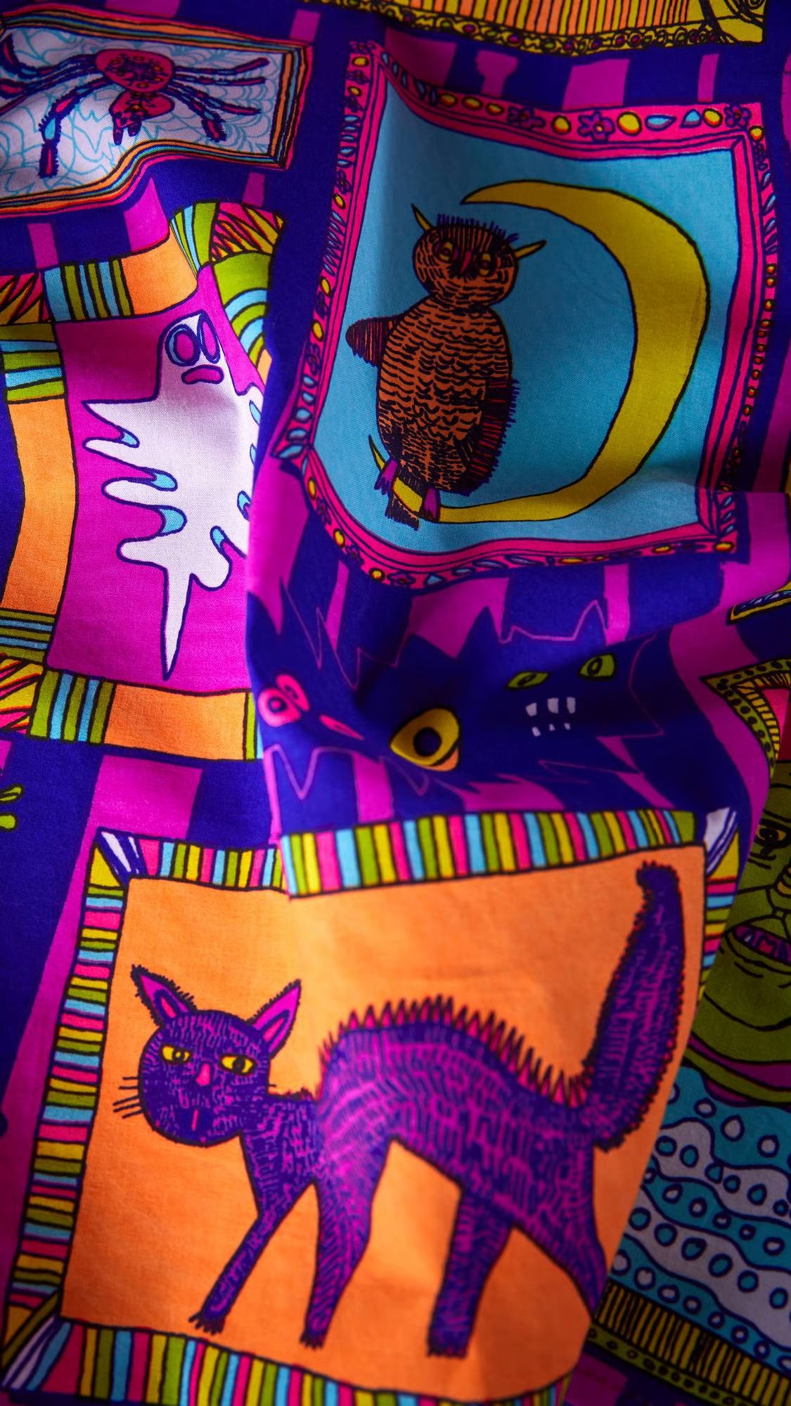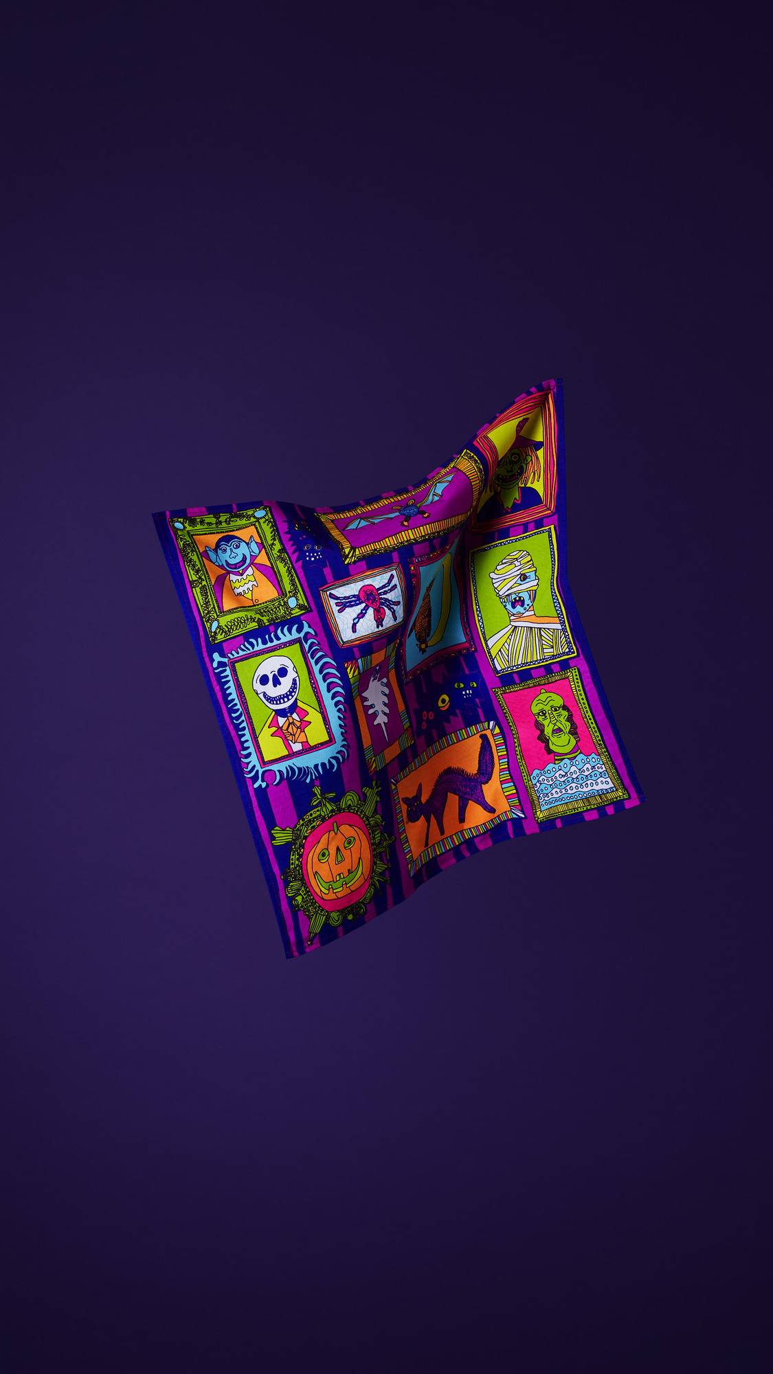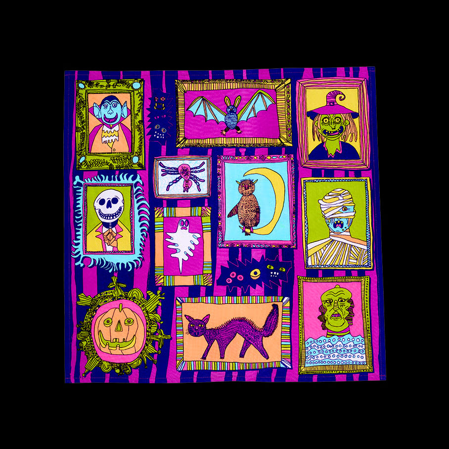 Designed by Jordan Moody of Intoart who says, “First I made a list and chose my favorite Halloween characters I wanted to draw. I imagined them all living together in the same big house and my Knot Wrap design is how I think their big wall of fancy framed photos would look.”