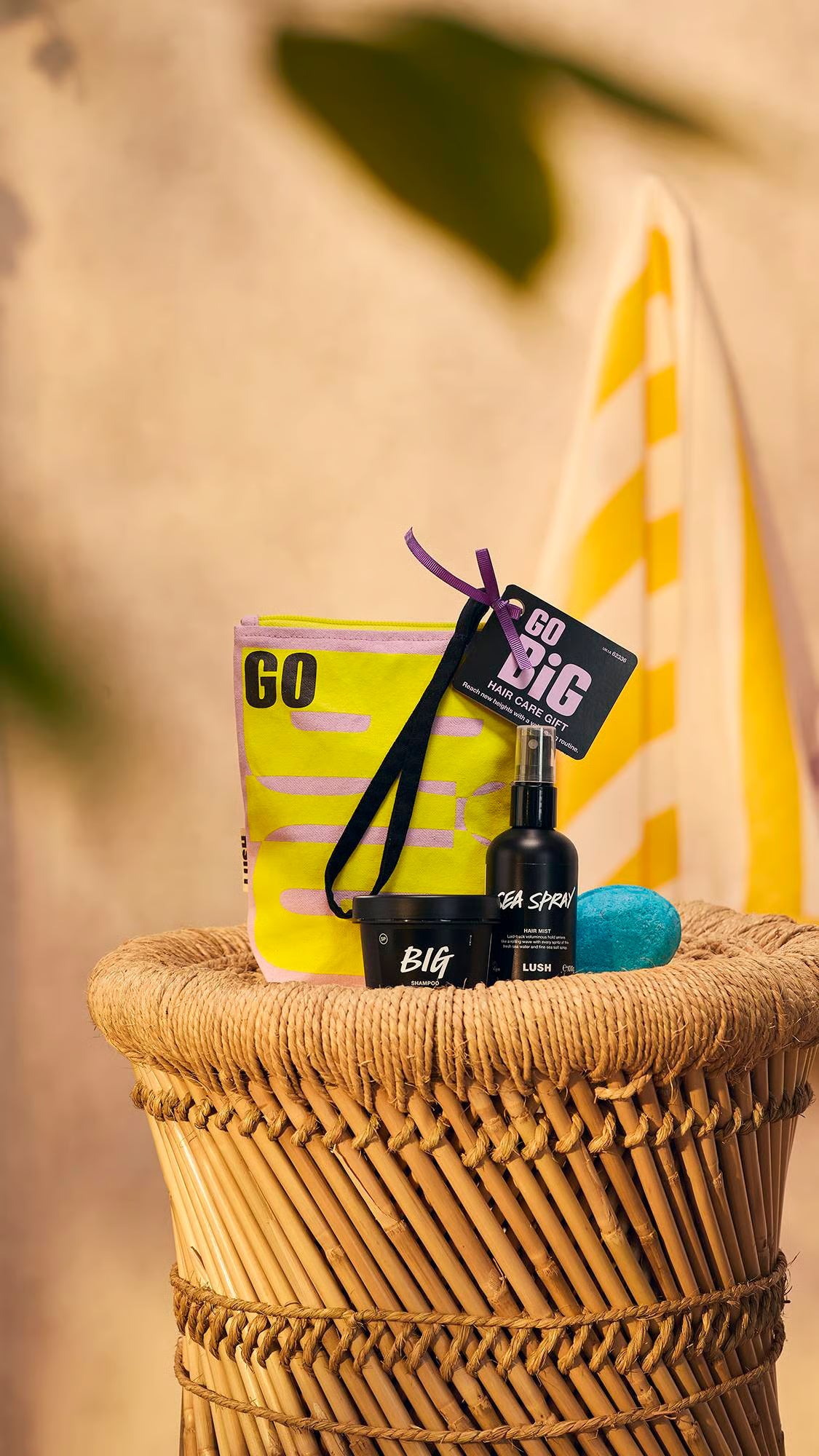 Boost your hair from flat to full with a trio of sea salt products for a volumizing haircare routine. Inside this reusable organic cotton travel bag you'll find shampoo, conditioner and hair mist for styling. Cleanse with fan favorite Big Shampoo, made with a base of over 50% sea salt for massive lift, then soften and add shine with lightweight Big Pressed Conditioner. Finish off with a spritz of Sea Spray for beach-beautiful texture.