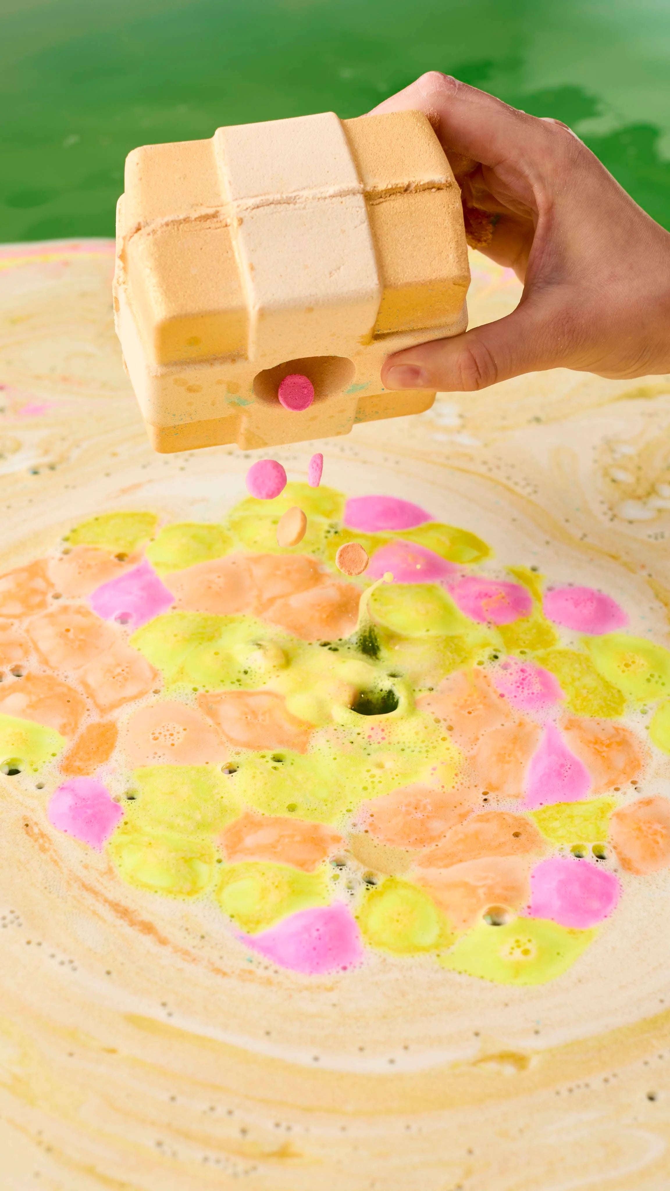 What’s inside? Give it a rattle and see if you can figure it out. Experience the joy of Christmas with vibrant sweet orange and zesty lime oils for uplifting and irresistibly sweet waters. There’s plenty to go around with this 3-in-1 bath bomb that’s good for up to three baths. Share the fun with others or keep it for yourself, we won’t tell.