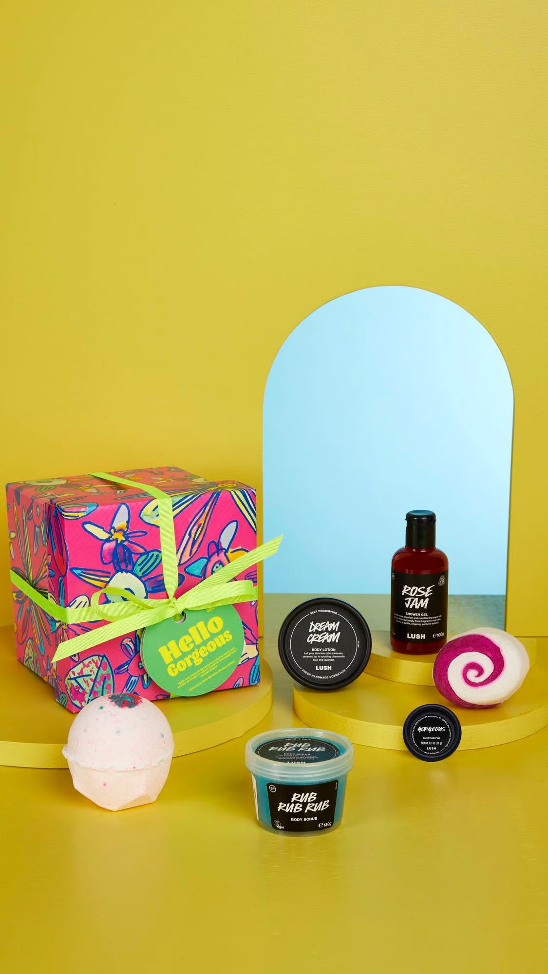 Bathe, shower, soften and scrub your way to all-over gorgeousness. Lift the lid on this whimsical, reusable box to find fruity and floral treats like our bestselling Dream Cream Self-Preserving Body Lotion, The Comforter Bubble Bar, Rose Jam Shower Gel, our most luxurious facial moisturizer and more. Delicately-scented and softened skin that feels its best? Your wish is our command, gorgeous!