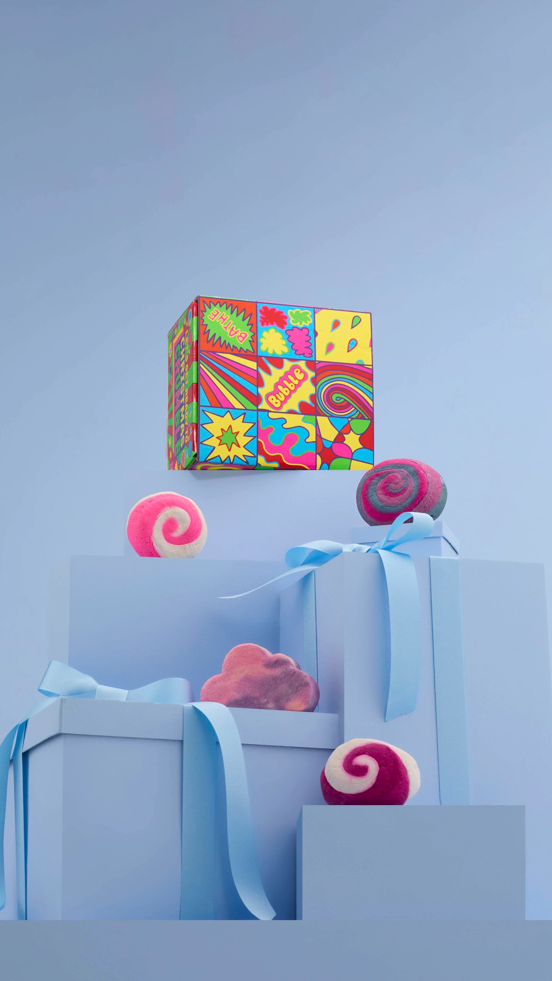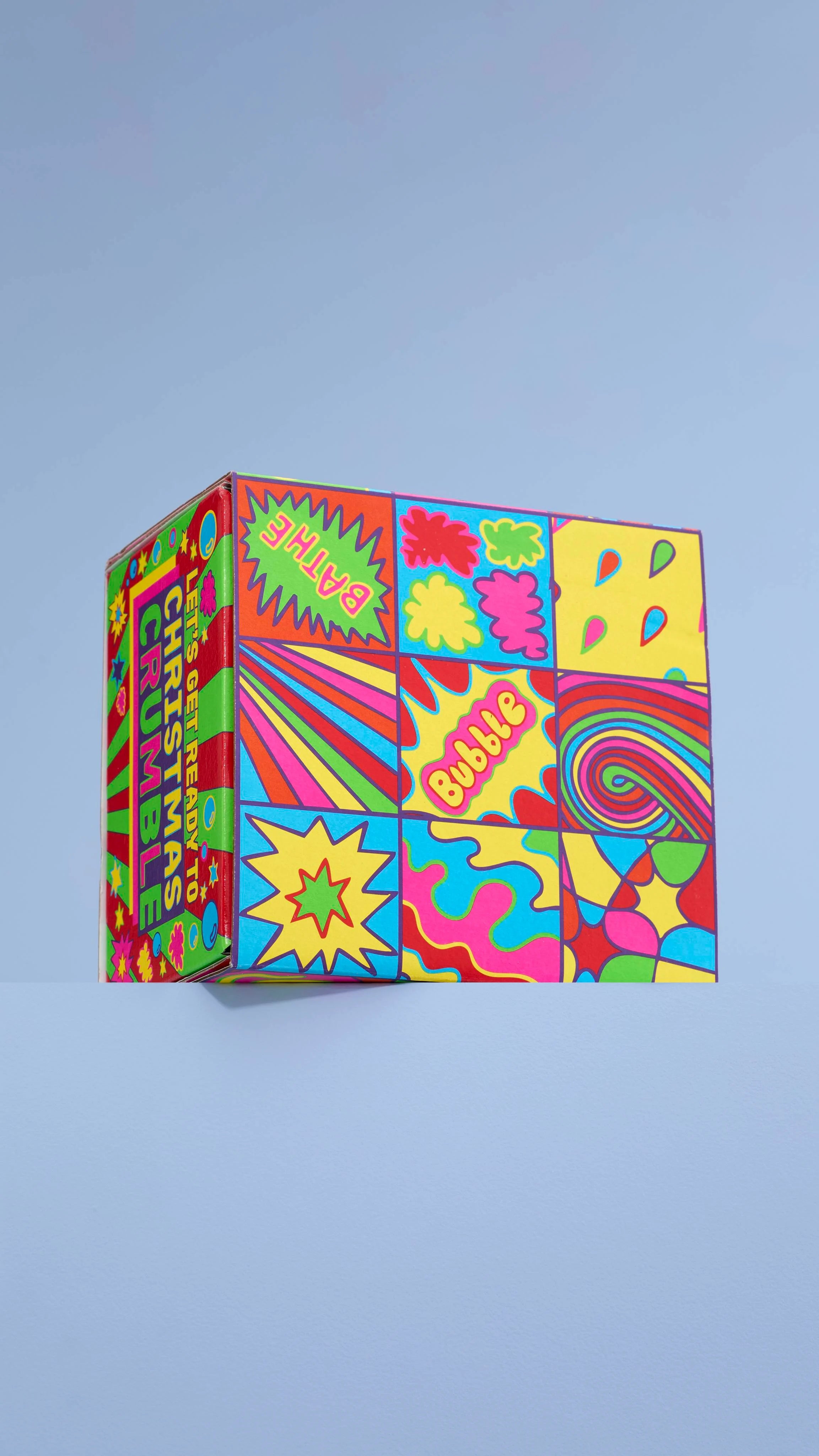 Lush Creative Artworker Georgia Haywood, says, “This gift design was inspired by the bold colors, iconic motifs and punchy patterns of the Pop Art movement, blended with the playful themes of bubbles and festive bath time fun.”