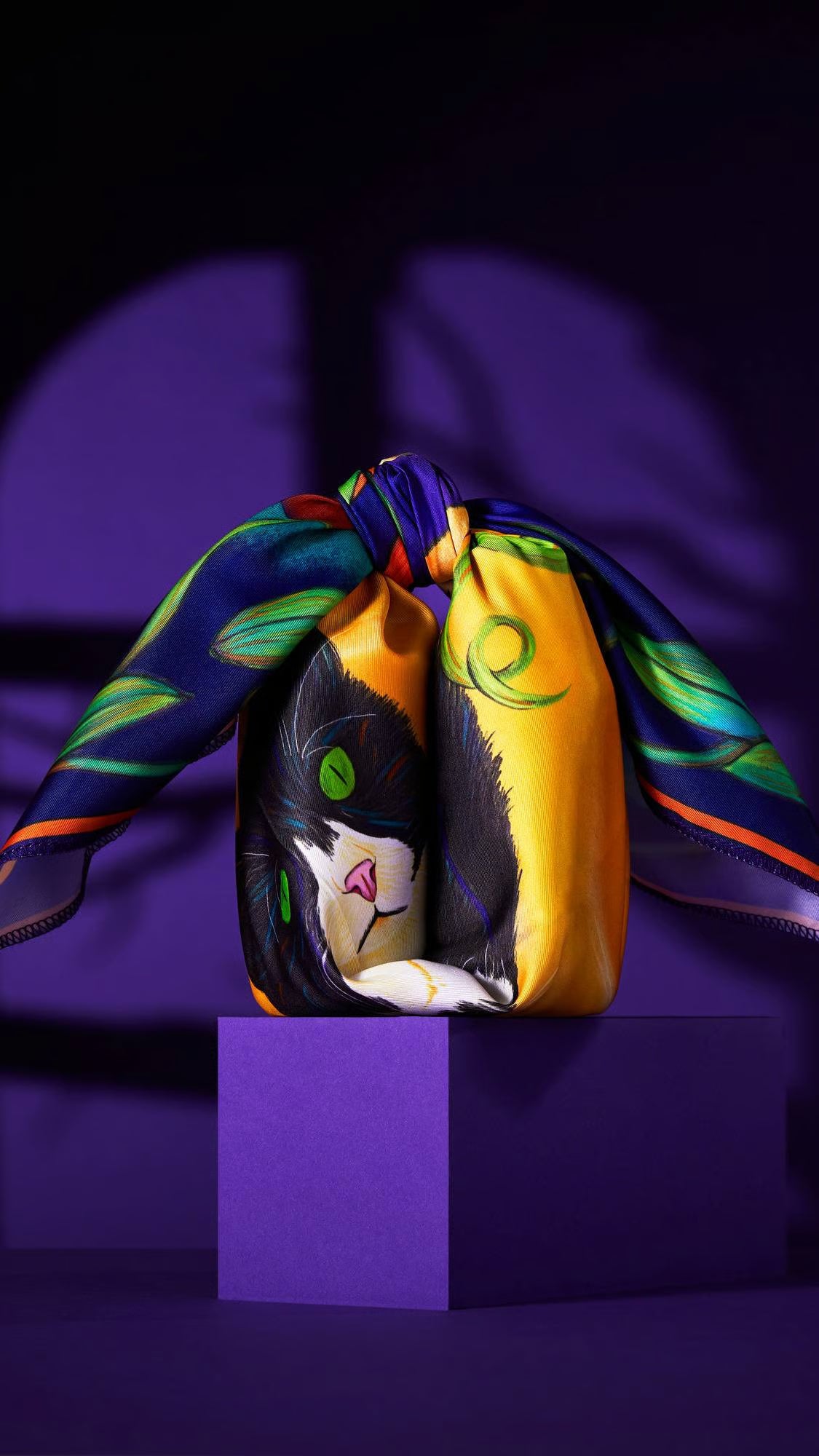 Fill this Halloween Knot Wrap with seasonal Lush treats and pop it on your friends porch in the night for a surprise Boo Basket! It’s made from recycled polyester, so it can be reused again and again — it has at least nine lives.