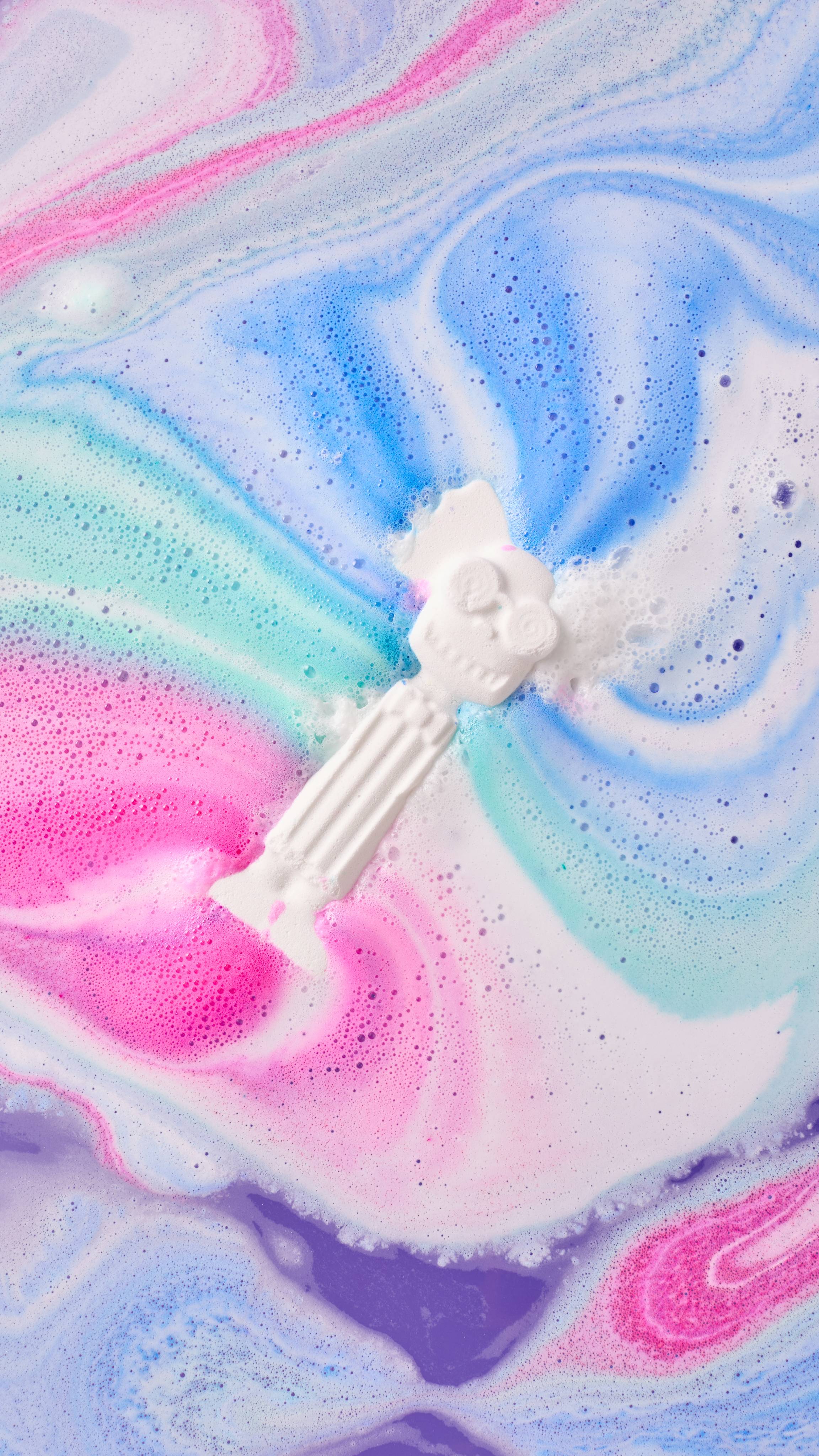 A sprinkling of innovation, a wisp of new age thinking and a bubbling dose of zesty grapefruit and tangerine oils. *Insert wild cackle for full effect*. We’re known for our wacky inventions and out-of-the-box thinking. What’s truly mad though, is the burst of bright rainbow colors that releases in swathes across the bathwater!