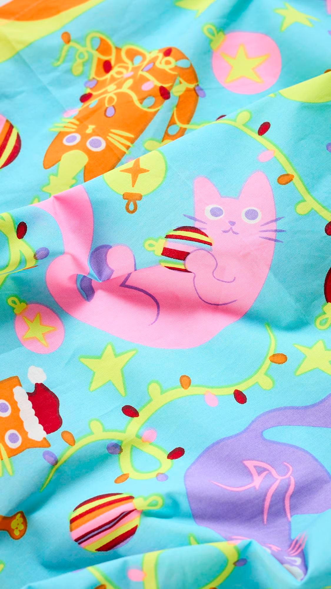 Designed by our very own Grace Cole, who was inspired by “the chaos and charm of cats at Christmas — tangled in lights, batting at baubles, and claiming every gift box as their own. It’s a little messy and full of holiday mischief.”