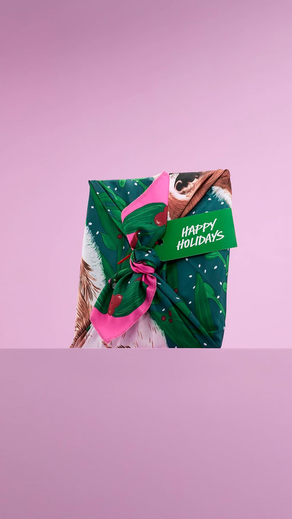 Lush Knot Wraps are a reusable and easy-peasy wrapping alternative to gift papers, made from either organic cotton or recycled polyester. They come in a variety of colors, designs and sizes! Ditch disposable paper for good and wrap up your gifts and naked products again and again with our reusable, vibrant and fun Knot Wraps.