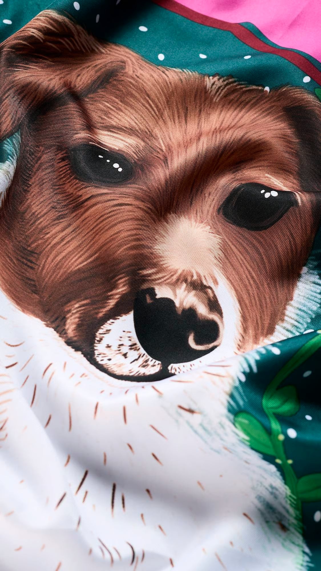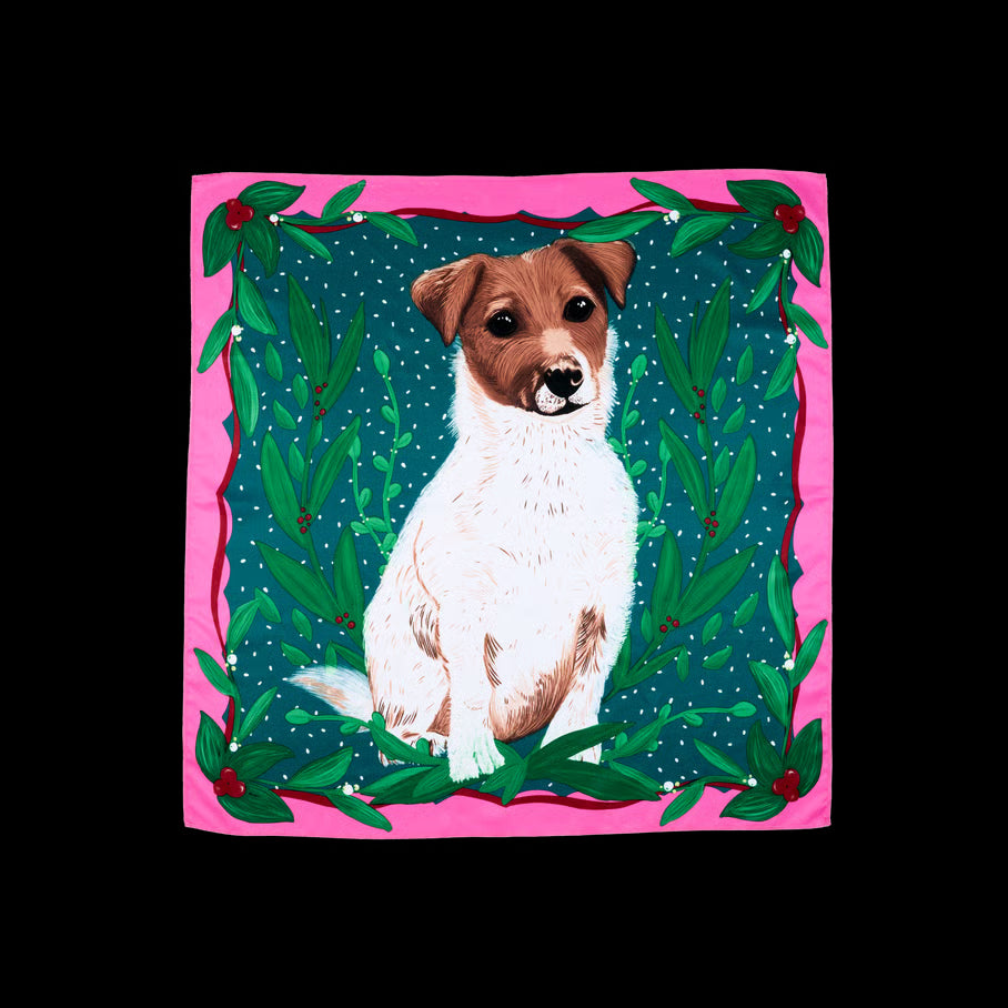 Designed by Lush Gift Designer Kate Ellison, who has taken inspiration from our resident dog Ruby from Lush Headquarters in Poole, England! Her human is Archie, one of our creative artworkers, and Ruby often joins him for work and is a very friendly addition to our environment. She is depicted here in a festive scene ready for a cozy traditional Christmas.