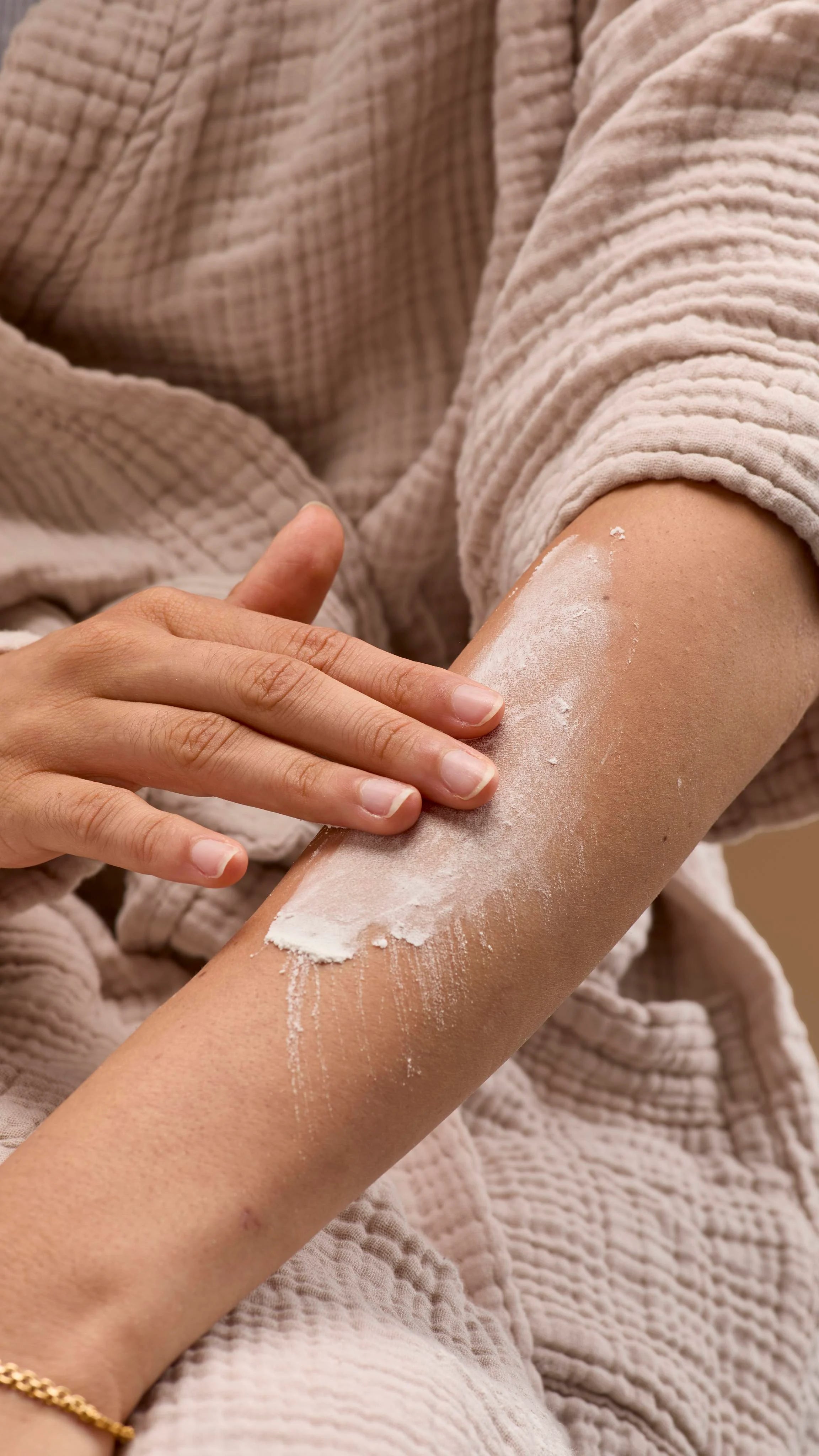 - Inside is grated cocoa butter, to melt on and stop the skin feeling dry or rough. It’s all anyone needs to wear.