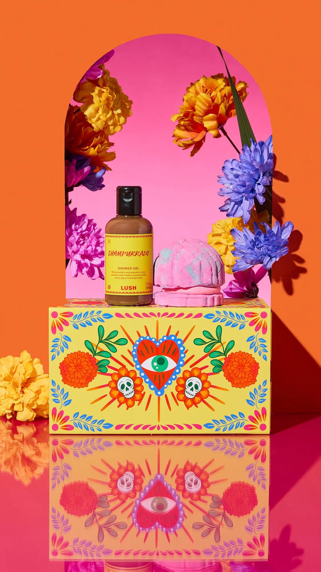 Celebrate all the joys life has to offer this Día de Muertos with the bright and bold Cempasúchil Bath Bomb to uplift your spirits as the rich and decadent Champurrado Shower Gel wraps you in a comforting blanket of nostalgia.