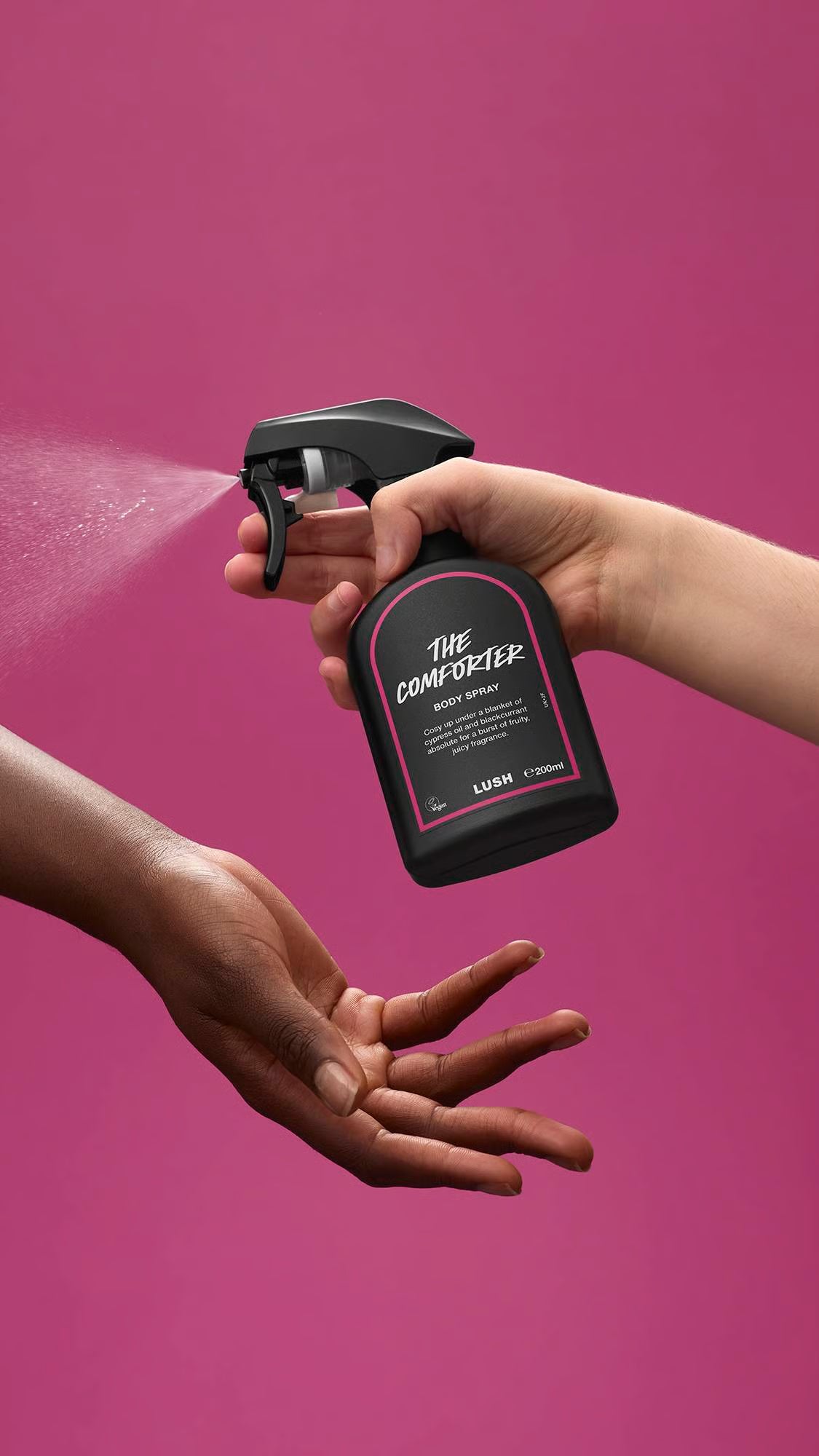 Fans of our bestselling The Comforter Bubble Bar and Bath Bomb will love this spritzable take on an all-time Lush classic. Cypress and bergamot oils offer a fresh, uplifting fragrance, making this spray perfect for a post-gym top-up of sweet scent. Of course, the star is the ever-alluring blackcurrant absolute, which gives The Comforter its signature fruity, snuggly scent. Cuddle up with this quilt-y pleasure.