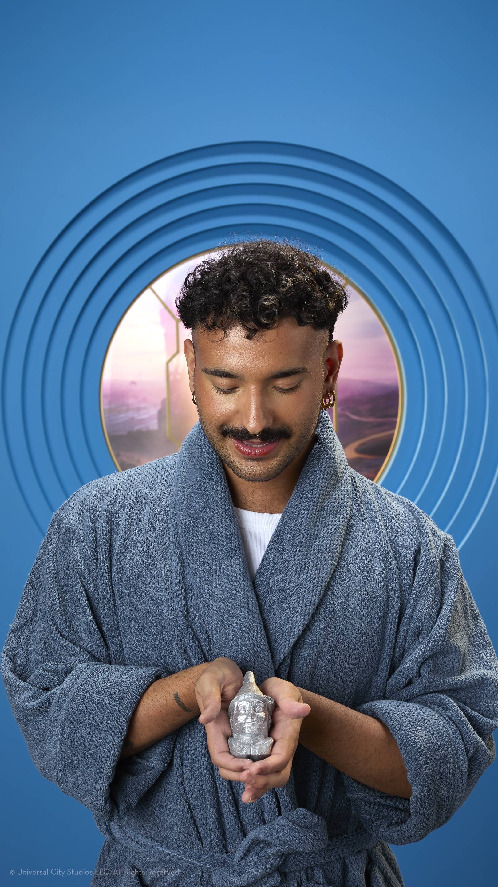 Hold this Wicked: For Good x Lush reusable bubble bar under running water for sparkly, subtle blue waters (a nod to Boq) topped with piles of fluffy bubbles. The crystalline freshness of cooling peppermint and fresh spearmint will awaken even the rustiest of hearts.