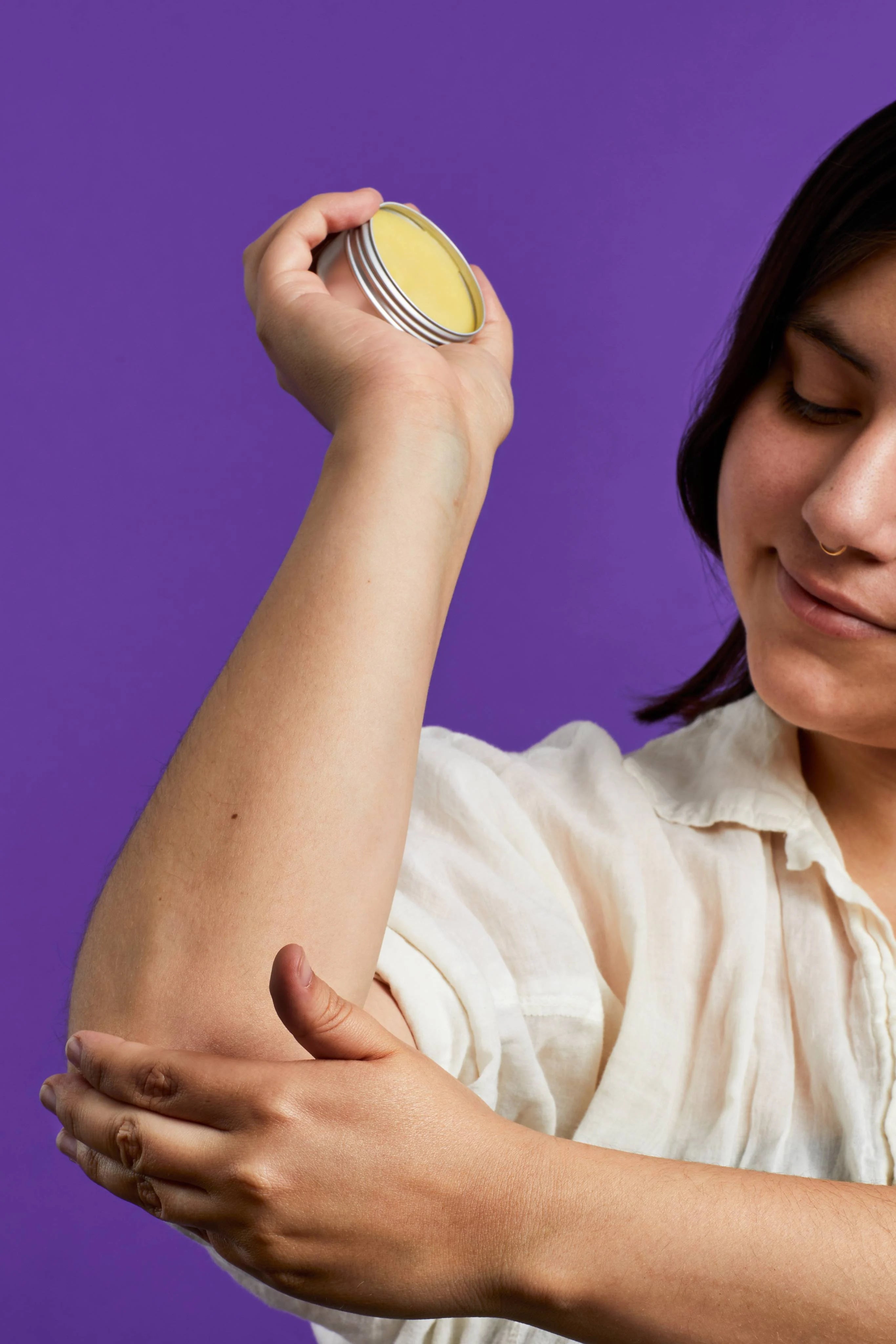 Our moisturizing, all-purpose balm is made with only three simple and natural ingredients. Rose wax soothes irritated skin, candelilla wax creates a protective barrier to lock in moisture and organic jojoba oil provides essential moisture to skin. Top up any time and get on with your day.