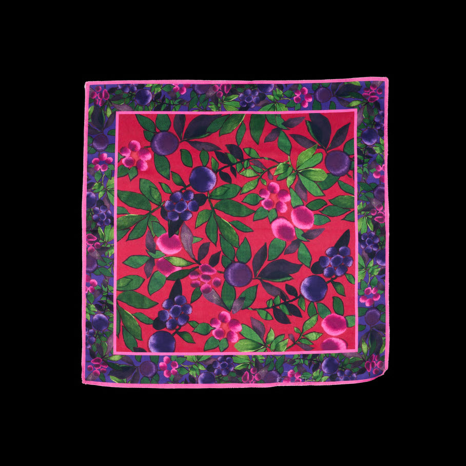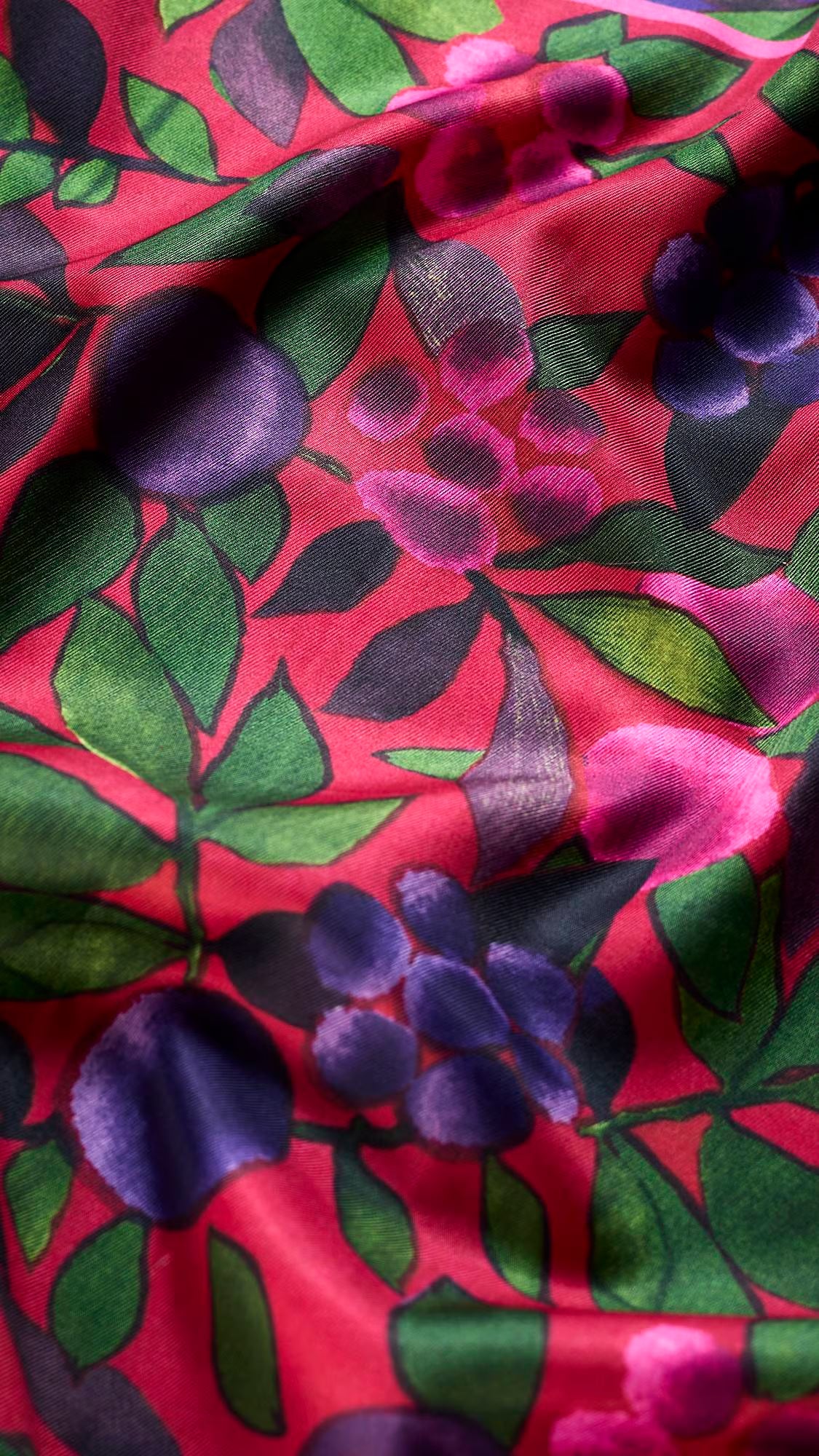 This Knot Wrap is 100% recycled polyester made from recycled plastic bottles. The bottles are collected to GRS (Global Recycled Standard) and are washed, spun and chipped. These chips are melted and go through a fine spinneret, which extrudes the plastic into yarn. The fabric is then printed using heat transfer method, achieving lots of detail and painterly effects. Once printed, it is sewn and finished in Anhui Province, China.